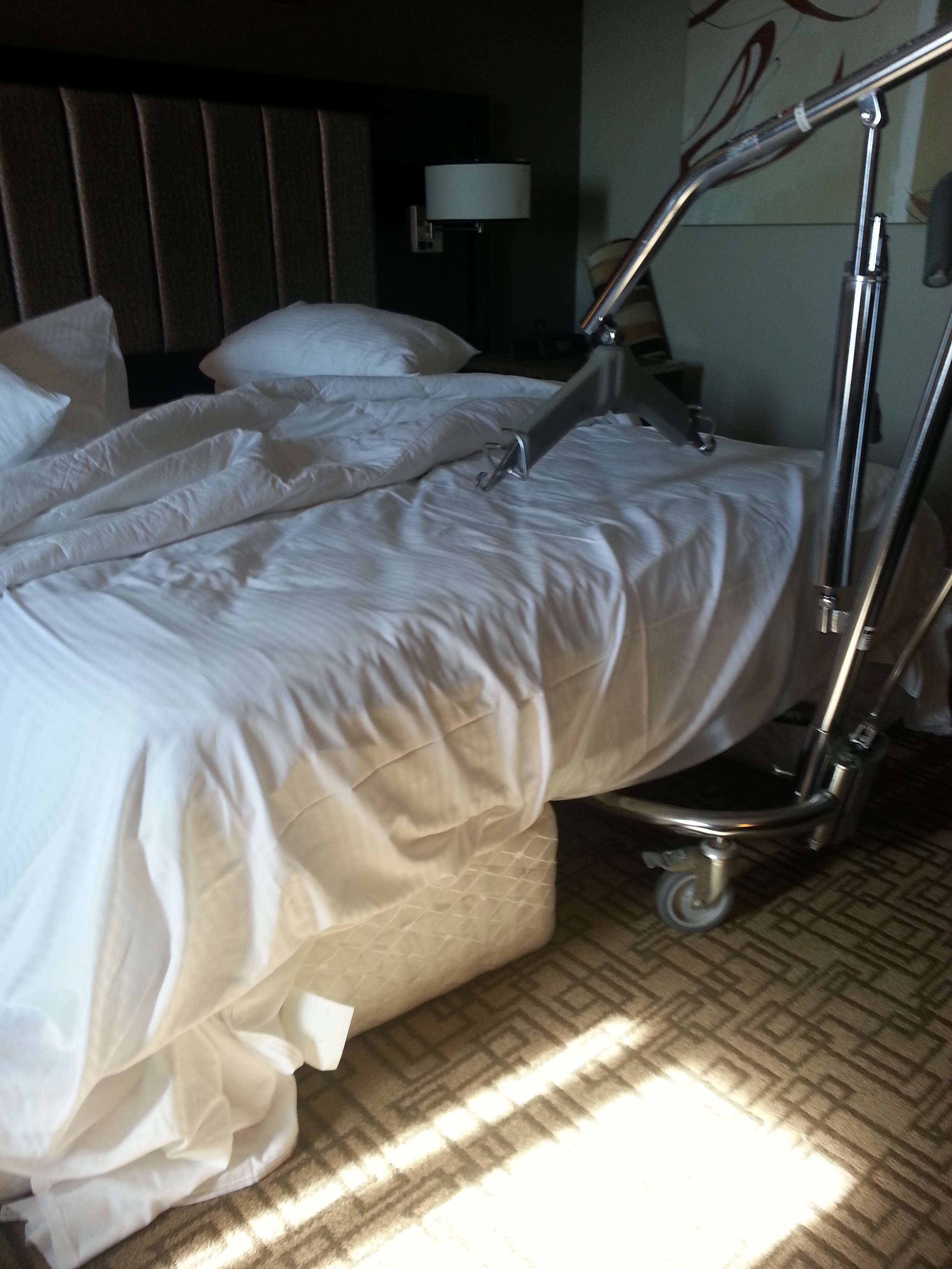 A final note: you may be wondering why we haven’t used air travel, especially for some of the more distant locations. The answer is twofold. First, the airlines are simply not equipped for a person in Cheryl’s condition. They expect her to transfer from her chair to their narrow aisle chair then to the seat when boarding. Of course, this process has to be reversed for deplaning. When we tried that, it was very obvious that just doing all that transferring was extremely tiring and stressful for Cheryl. It would also require KJ or someone else to basically lift her by hand. Second, our normal daily routine requires equipment that we would not trust to airline baggage handlers. I am talking about her wheelchair, the lift, and the limpidema device we carry for use on her legs. Flying is a non-starter for this family.